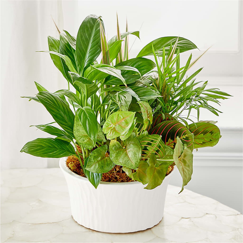 Offrez les bienfaits revigorants des plantes vertes avec le Balance & Harmony Dishgarden pour ajouter de l'énergie, de l'air frais et de la positivité à leur espace.