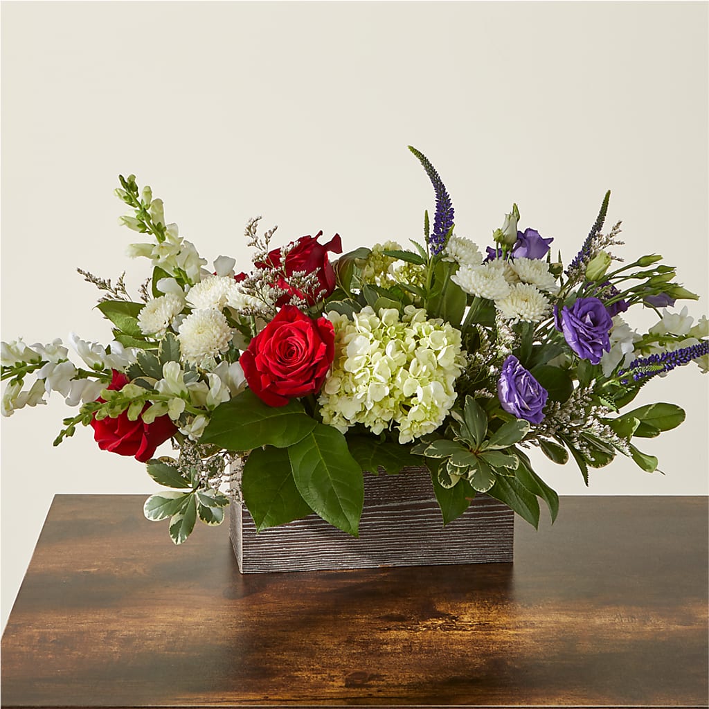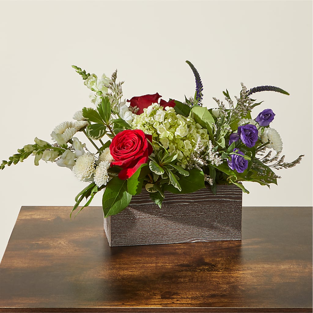 Conçu par des fleuristes dans une boîte en bois marron, prêt à être exposé.